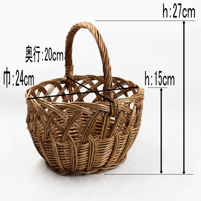 ■楕円型 透かし編みピクニックバスケット(*^_^*)Sサイズ ■ 巾約24cm ×奥20cm× 高さ15cm(取っ手含 27cm)煮柳製 編み目がきれいでおしゃれな形のバスケット。